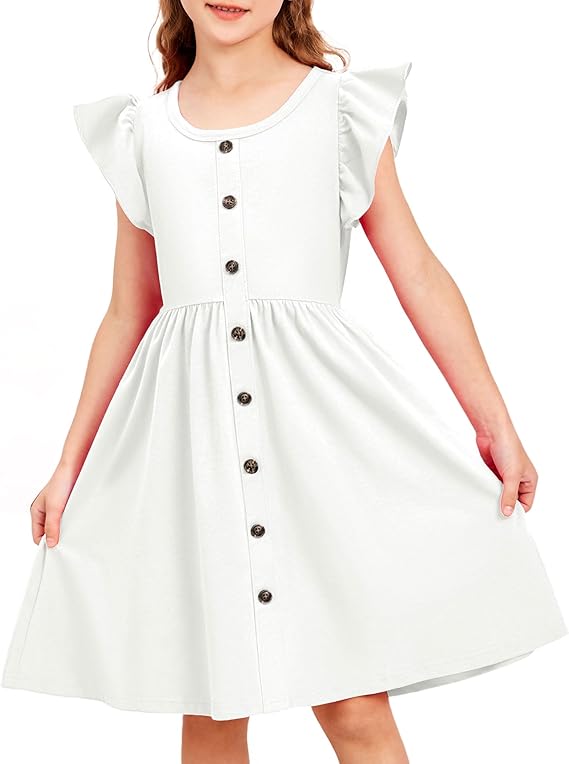 - Dress design: Arshiner summer dress for girls is characterised by unique ruffle sleeves that look like two cute little wings, with delicate buttons that make your child even more cute and charming when wearing it.